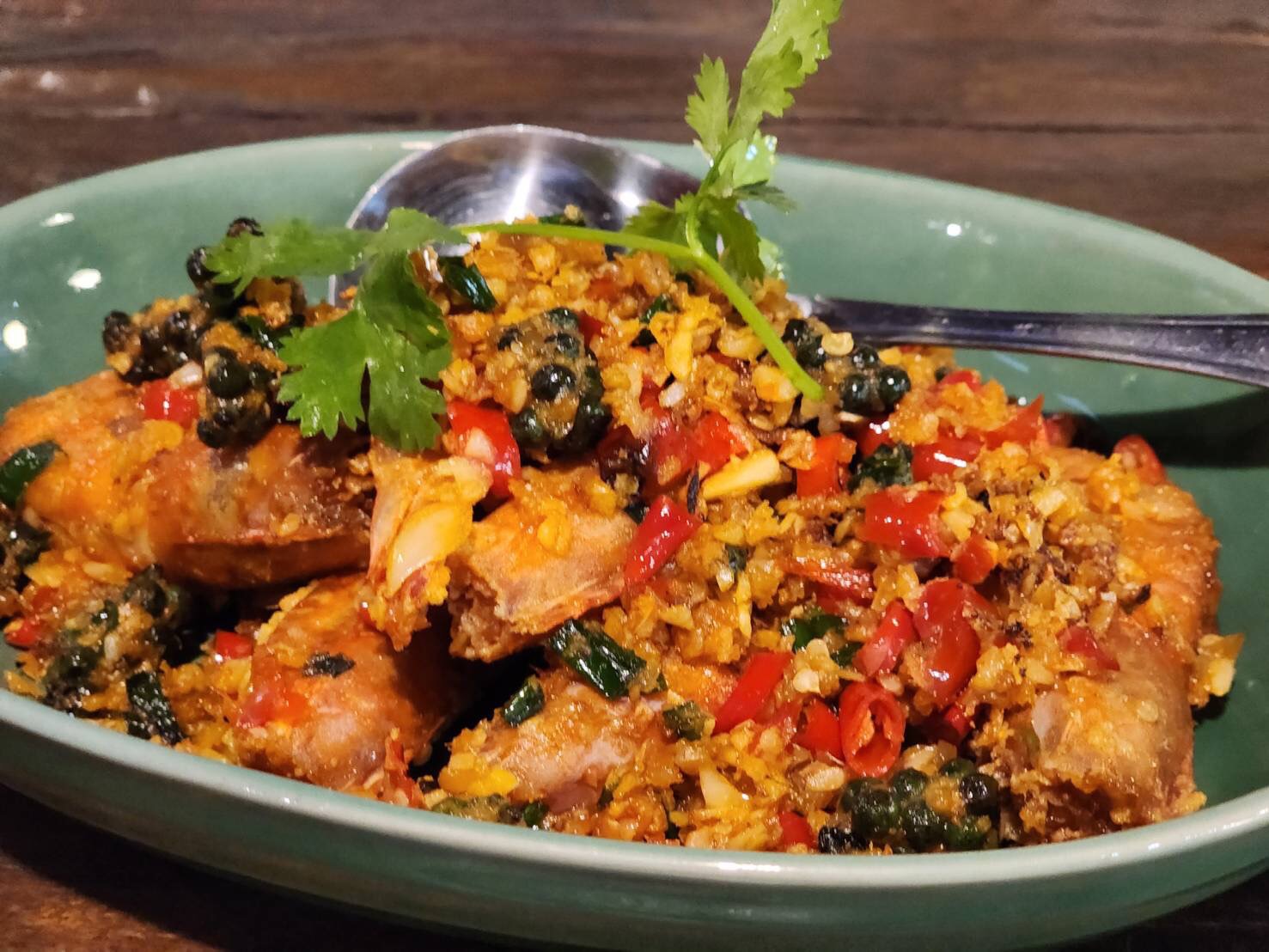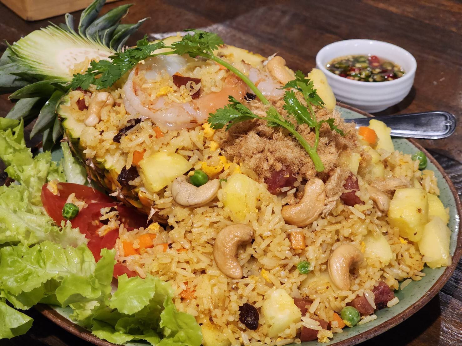 หลังจากอิ่มเอมกับบรรยากาศแล้ว หนุ่มฟิวส์ก็ไม่รอช้าที่จะอิ่มอร่อยกับอาหารจานโปรดที่อยู่ตรงหน้า ทั้ง ต้มยำกุ้งน้ำข้น, ปูนิ่มทอดกระเทียม, ปูผัดพริกเกลือ และเมนูสุดพิเศษ ข้าวผัดสัปปะรด จัดเสิร์ฟมาทั้งลูก น่ากินชะมัด!!! โดยหนุ่มฟิวส์เล่าถึงรสชาติของอาหารว่า