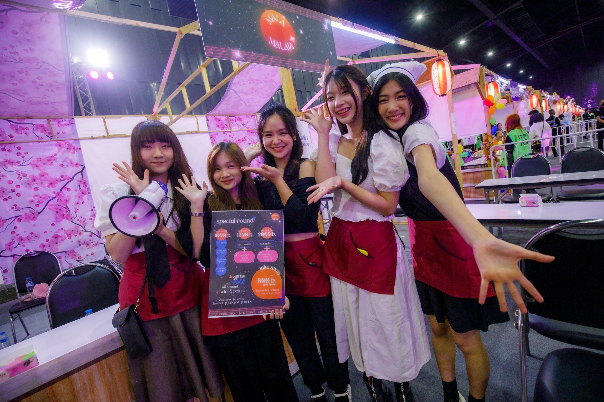 บูธหมายเลขที่ 5 ชื่อกลุ่ม “เด็กน้อยมัตสึริ” กิจกรรมเกมปาโป่ง และจำหน่ายสินค้า น้ำสมุนไพร และข้าวเหนียวหมู ประกอบด้วยเมมเบอร์ดังนี้ นายน์ BNK48 หัวหน้ากลุ่ม , แพนเค้ก BNK48 , แพมแพม BNK48 , รตา BNK48 , มารีน BNK48 และเบอร์รี่ BNK48