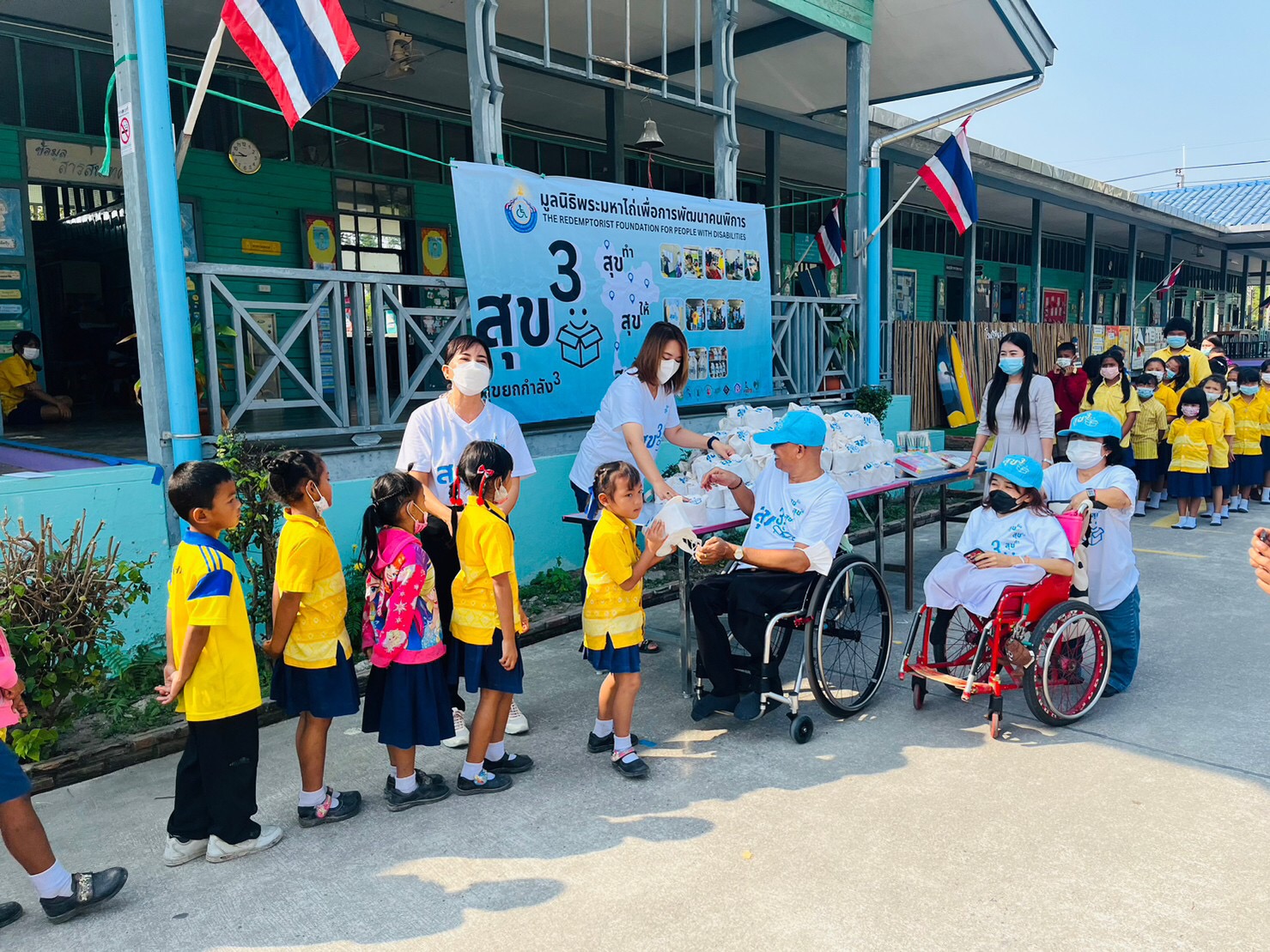 ​​เรย์วิสาหกิจเพื่อสังคม เปิดโครงการ “สุขยกกำลังสาม”  ผลิตสินค้าที่มีคุณภาพออกจำหน่ายเพื่อสร้างรายได้แทนการขอหรือการรอรับเงินบริจาค กับชุดผลิตภัณฑ์จากคนพิการและคนในชุมชนกว่า10 เครือข่าย จำนวน  500,000 ถุง ราคาถุงละ 199 บาท ตั้งแต่วันนี้จนกว่าสินค้าจะหมด เผย 3 สุข ที่จะเกิดขึ้น คือ1. สุขทำ 2.สุขให้ 3.สุขรับ เพื่อสร้างรายได้แทนการรอรับเงินบริจาคและสนับสนุนได้ให้โอกาสคนพิการ แะคนในชุมชน ให้มีอาชีพ มีรายได้ที่ยั่งยืน ส่วนผู้ซื้อหากไม่ประสงค์จะรับสินค้า “ถุงสุขยกกำลังสาม” จะถูกส่งมอบไปยังกลุ่มเปราะบางทั่วประเทศต่อไป วอนคนไทยใจบุญช่วยสนับสนุนสร้าง “สุขยกกำลังสาม” MADE BY DISABLED ด้วยการซื้อ “ถุงสุขยกกำลังสาม” ได้แล้วตั้งแต่วันนี้ ด้วยการแอด Line ที่ @mahataicharity หรือโทร 093 992 6959, 086 414 7584