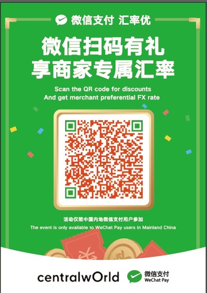 จากความสำเร็จของเซ็นทรัลพัฒนาเมื่อต้นปีที่ผ่านมา WeChat Pay จะมีการทำการตลาดที่เข้มข้นมากขึ้นด้วยการมอบหลากหลายโปรโมชั่นสุดพิเศษตลอดปีให้กับศูนย์การค้าเฉพาะที่เซ็นทรัลพัฒนาฯ อาทิ การมอบอัตราแลกเปลี่ยนเงินเรทพิเศษที่สุดให้กับร้านค้าในศูนย์การค้า มากกว่า 1,000 ร้าน เป็นต้น”