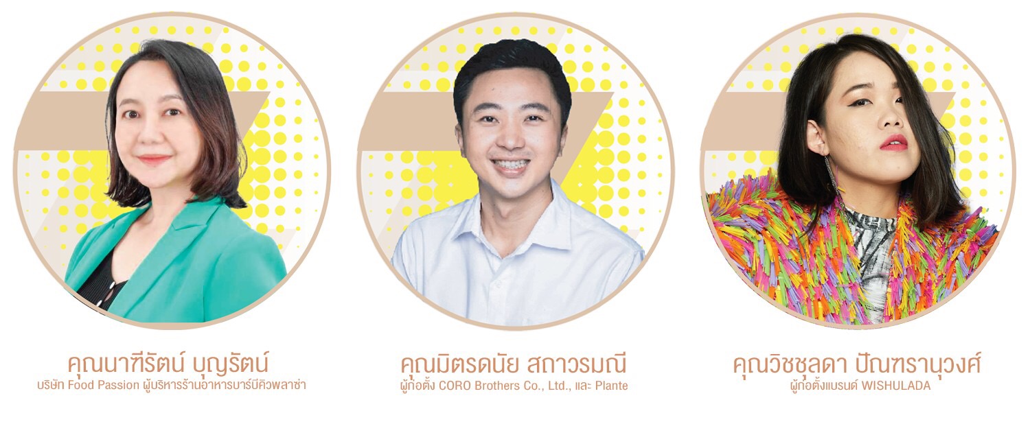 โดยเริ่มจากหลักสูตรแรก คือ “ประสบการณ์จาก CEOs สู่แรงบันดาลใจ” เราให้ความสำคัญกับหลักสูตรนี้มาก เพราะเชื่อว่า การสร้างแรงบันดาลใจ ถ้าเราจุดติด จะเป็นจุดเริ่มต้นที่จะพาไปถึงจุดหมาย ฉะนั้นวิทยากรสำหรับหลักสูตรนี้ จึงต้องเฟ้นหาผู้ที่เหมาะสม เราจะดูก่อนว่าผู้รับสารในแต่ละครั้งคือใคร เช่น ในพื้นที่ภาคเหนือหรือใต้ มีอะไรเป็นเทรนด์ เป็นที่สนใจของคนในพื้นที่นั้น นำสิ่งใกล้ตัวมายกตัวอย่าง ให้ผู้ฟังรู้สึกว่าเข้าถึงได้ เป็นคนในกระแส และจับต้องได้ วิทยากรในหลักสูตรนี้จึงมีความหลากหลายมากที่สุด และสำคัญคือต้องเป็นคนที่มีทั้งองค์ความรู้และประสบการณ์จริงที่จะมาถ่ายทอดเรื่องราวและประสบการณ์การลองผิดลองถูก ปัญหา อุปสรรค และจุดเปลี่ยนที่ทำให้ธุรกิจประสบความสำเร็จ ทั้งแบรนด์ระดับประเทศอย่างคุณนาฑีรัตน์ บุญรัตน์ บริษัท Food Passion ผู้บริหารร้านอาหารบาร์บีคิวพลาซ่า, คุณเฟิร์น นัทธมน พิศาลกิจวนิช ผู้บริหารสุกี้ตี๋น้อย ผศ.ดร.คณน ไตรจันทร์ ผู้ก่อตั้งแบรนด์ชาพะยอม, คุณวิชชุลดา ปัณฑรานุวงศ์ ผู้ก่อตั้งแบรนด์ WISHULADA, คุณพีท-คุณพอท มิตรดนัย สถาวรมณี ผู้ก่อตั้ง CORO Brothers Co., Ltd., และ Plante เป็นต้น