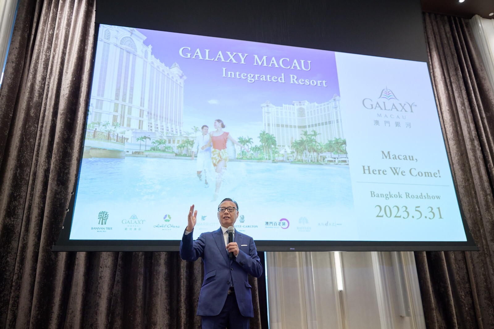 งานโร้ดโชว์ครั้งนี้นับเป็น “มหกรรมคาราวานท่องเที่ยวของมาเก๊า ที่วัตถุประสงค์เพื่อนำเสนอความมหัศจรรย์ ของมาเก๊าให้แก่นักท่องเที่ยวชาวไทยและทั่วเอเชียตะวันออกเฉียงใต้ได้ร่วมสัมผัส โดยโรงแรม Galaxy Macau มีความภาคภูมิใจที่ได้เข้าร่วมคาราวานท่องเที่ยวครั้งนี้ในฐานะผู้ให้บริการรีสอร์ตหรูแบบครบวงจรที่ให้การ บริการระดับเวิลด์คลาสในทุกมิติทั้งการพักผ่อนการรับประทานอาหารความบันเทิงรวมไปถึงการจัดประชุม และการจัดกิจกรรม