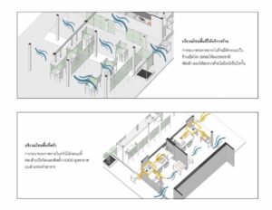 นายศรัณยู สว่างเมฆ อาจารย์สาขาวิชาสถาปัตยกรรม คณะสถาปัตยกรรมศาสตร์ และการออกแบบ มหาวิทยาลัยเทคโนโลยีราชมงคลพระนคร เปิดเผยว่า ทางทีมวิจัยได้ร่วมกัน ออกแบบการจัดรูปแบบของร้านอาหารในยุค New Normal เพื่อลดความแออัดและเว้นระยะห่าง เริ่มตั้งแต่การออกแบบพื้นที่การใช้สอย ( Zoning ) ภายในร้าน การจัดโต๊ะอาหาร การคัดกรองก่อนเข้าร้าน การสัญจรภายในร้าน จุดวางช้อน จาน อุปกรณ์เสริม อาทิ ฉากกั้นโต๊ะจัดวางอาหาร ระบบการถ่ายเทอากาศภายในร้านทั้งระบบปิดและระบบเปิด ซึ่งเป็นแนวทางปฏิบัติตามมาตรฐานของกระทรวงสาธารณสุขโดยนำวิทยาการเรื่องการออกแบบมาประยุกต์ใช้ตามลักษณะทางกายภาพของแต่ละร้าน ถึงแม้ว่าจะไม่สามารถป้องกันการแพร่ระบาดได้ร้อยเปอร์เซ็นต์ แต่ก็ถือว่าเป็นการยกระดับมาตรฐานการใช้บริการร้านอาหาร ให้สูงกว่าอดีตที่ผ่านมา ก่อนที่มีการแพร่ระบาดของโรคโควิด -19 รวมถึงสามารถสร้างความอุ่นใจให้ผู้บริโภค ซึ่งถือว่าเป็นองค์ความรู้สามารถนำมาปรับใช้สำหรับเจ้าของกิจการร้านอาหาร โดยสามารถขอข้อมูลเพิ่มเติมได้ที่ สำนักงานการวิจัยแห่งชาติ ( วช. )