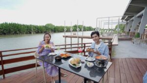 รายการ “เปรี้ยวปาก” เสาร์นี้มาเปิดความอร่อยแลนด์มาร์คใหม่ ปักหมุดไปที่ อ.พระสมุทรเจดีย์ ฟินสุดกับอาหารทะเล บรรยากาศดี อย่าเหงานอนอยู่บ้าน มาอร่อยกับเปรี้ยวปาก และ “จอย-เต๋อ” Canada ย้ายมา Thailand แล้วจ้า กับ “ร้าน Barn Klongsuan” (บาร์น คลองสวน) ร้านคาเฟ่บรรยากาศโรงนา ลำธารสวย แบบแคนนาดาเปะ จอย-เต๋อพามาไกด์ Shot ถ่ายรูปสวยๆ อย่างมุมสะพานริมน้ำ สวนหน้าโรงนา Prop ต้องมาแล้วนะ ร้านอยู่ที่ต.คลองสวน อ.พระสมุทรเจดีย์ จ.สมุทรปราการ ร้านเปิดเฉพาะวันพฤหัสบดี – วันอาทิตย์ เวลา 10.00 – 18.30 น. โทร. 09-2747-1122 ต่อกันที่ร้าน Seafood น้องใหม่ Style Resort บรรยากาศคือมีความริมน้ำ มีความชิลล์ สามารถเล่นกีฬาทางน้ำได้ ไม่ว่าจะเป็นพายเรือแคนนู เซิร์ฟบอร์ด ไปจนถึงเจ็ตสกี “ร้าน The Dishes Riverside” ที่นี่เค้ายังรวมวัตถุดิบอาหารทะเล ของดีของเด็ดจากทั่วประเทศ ร้านอยู่ที่ริมคลองสรรพสามิต อ.พระสมุทรเจดีย์ เปิดทุกวัน เวลา 11.00 – 22.00 น. โทร.09-3250-5562