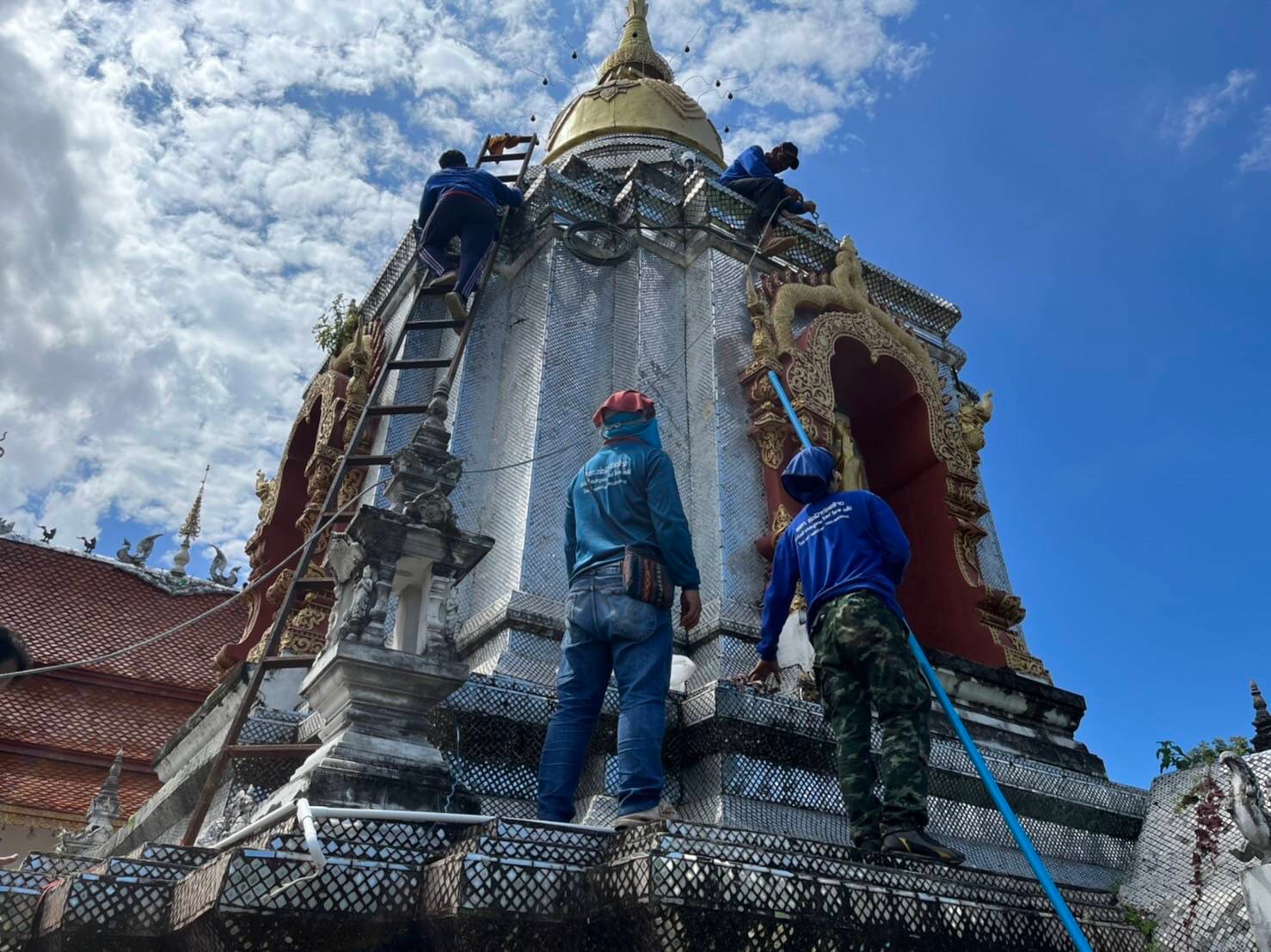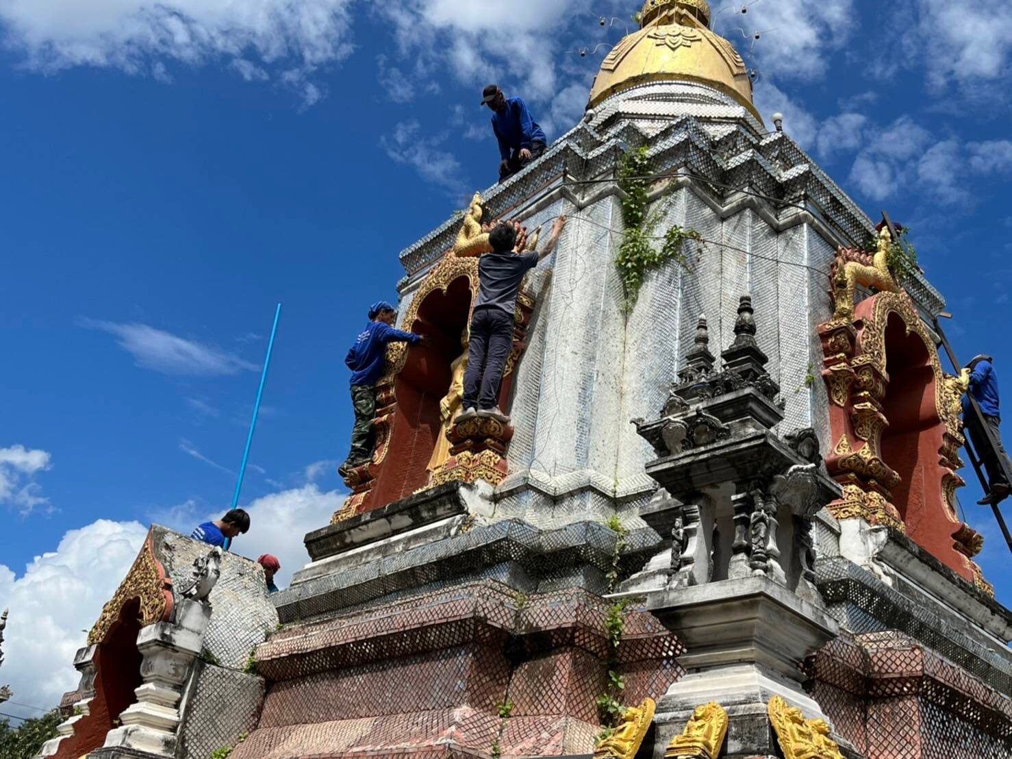 สำนักศิลปากรที่ ๗ เชียงใหม่ เร่งดำเนินการรัดดามเฝือกโดยรอบองค์เจดีย์วัดหัวฝาย เพื่อป้องกันอันตรายที่อาจจะเกิดขึ้นและวางแผนในการดำเนินงานบูรณะซ่อมแซม