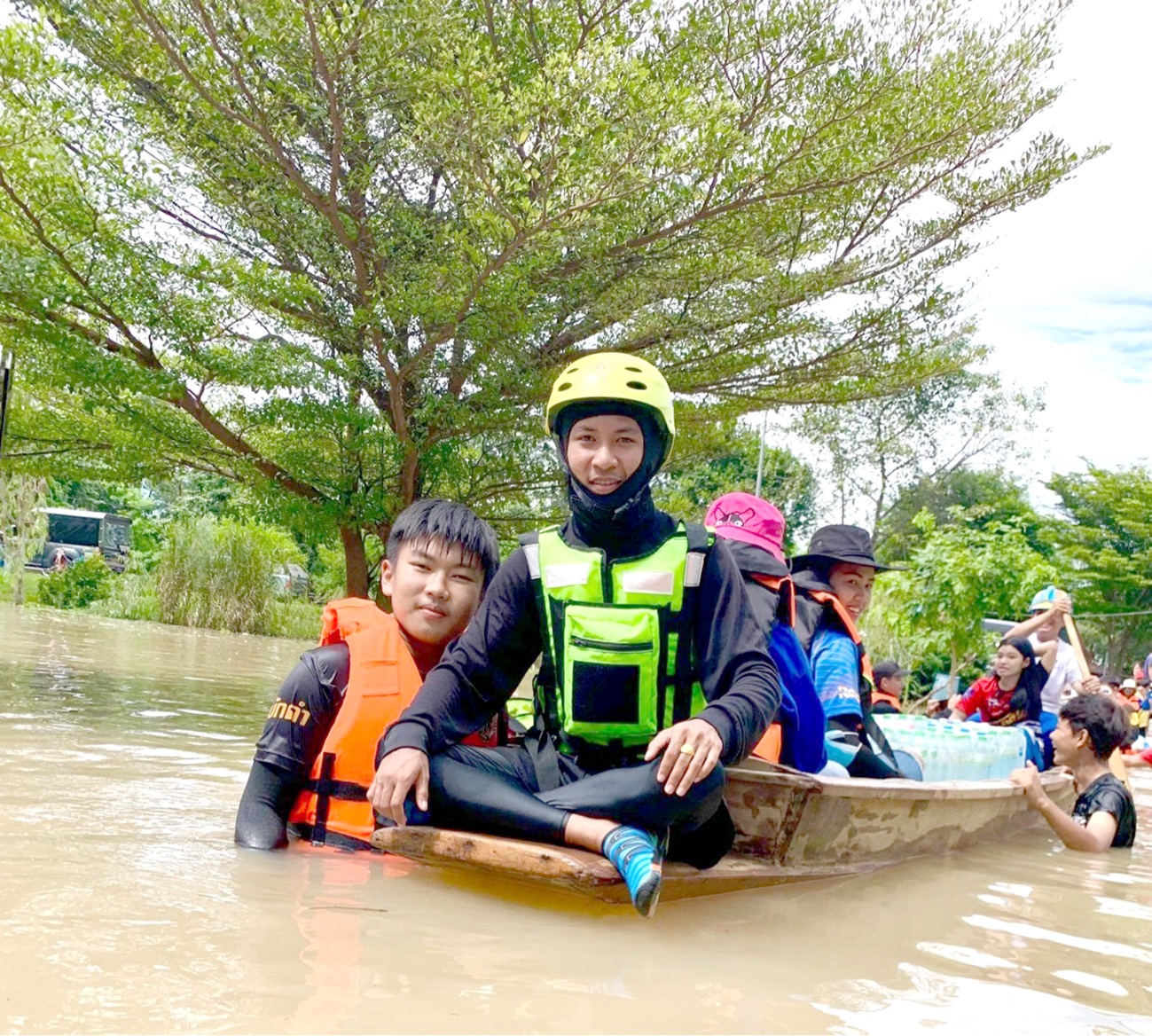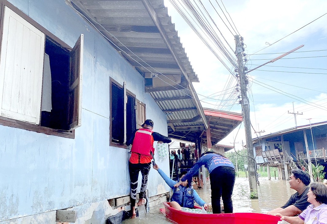 มูลนิธิจตุรธรรมประทีป อ.พานทอง จ.ชลบุรี ช่วยเหลือประชาชนที่ได้รับความเดือดร้อนจากอุทกภัยน้ำท่วม ต.เกาะเกิด อ.บางปะอิน