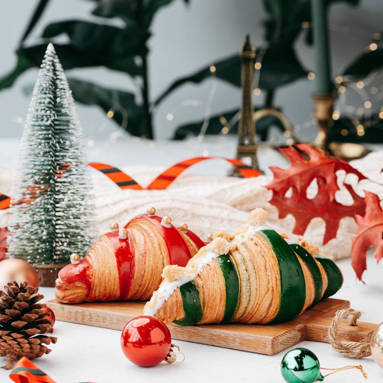 • Caramel Apple Christmas Croissant ครัวซองต์แป้งสองสีฉ่ำเนย โดดเด่นด้วยสีเขียว ต้อนรับเทศกาลคริสต์มาส ครัวซองท์สอดไส้ด้วยแอปเปิ้ลเขียวเนื้อนุ่ม กับไวท์ช็อกโกแลตวิปกานาช 29% จากฝรั่งเศส ดริปด้วยไวท์ช็อกโกแลต ราดซอลท์คาราเมลแบบโฮมเมด และท็อปด้วยคุกกี้อบเชยป่น